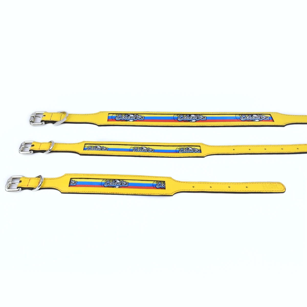 Viste a tu mejor amigo con los colores que nos unen. Este collar artesanal combina la resistencia del cuero con la vibrante bandera tricolor. Hecho en Colombia para los hinchas más fieles.