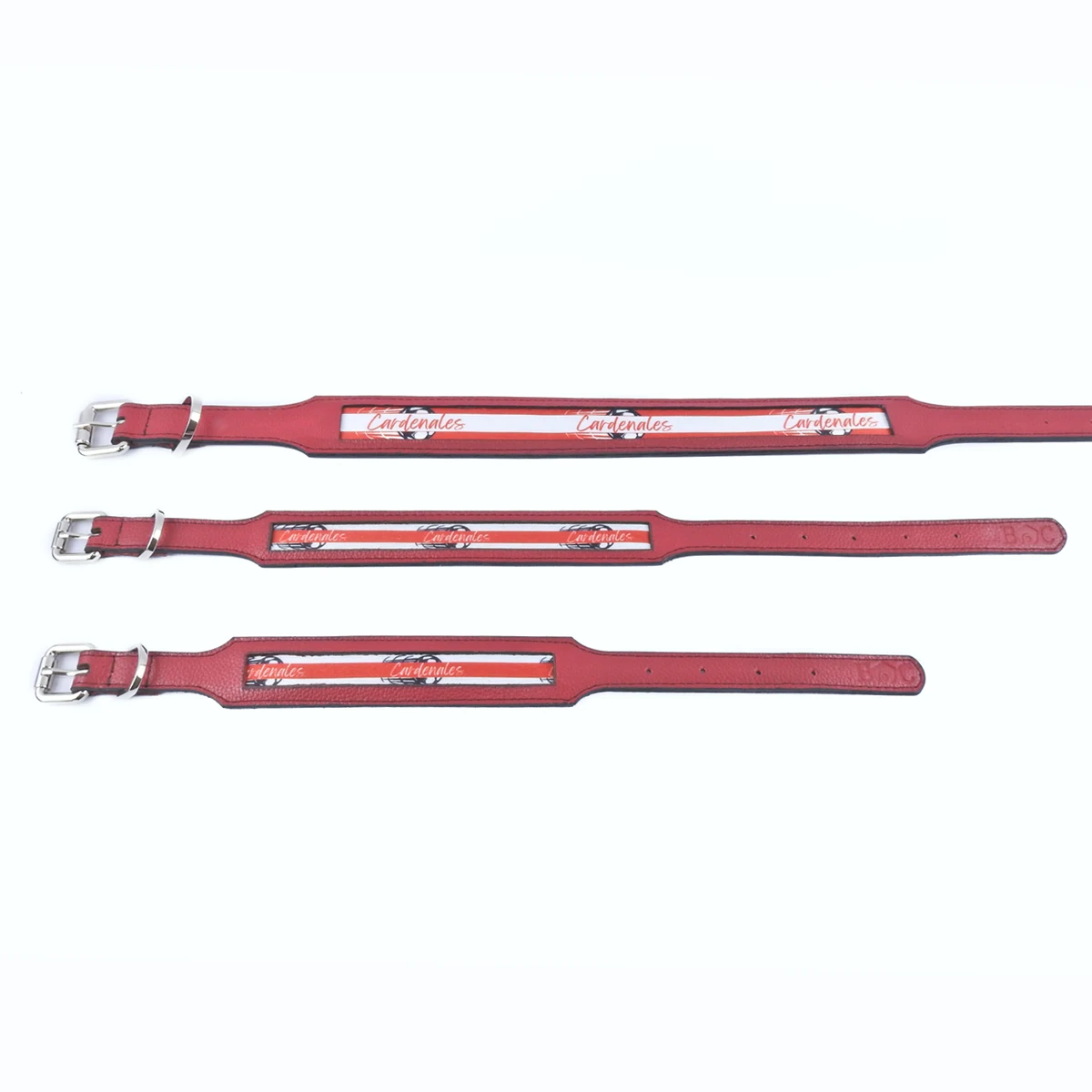 2. El Collar (Su Identidad): Tu perro lucirá un collar hecho a mano en cuero genuino, con una cinta sublimada que grita «Cardenal» en colores vivos y nítidos. Resistente, cómodo y lleno de historia.